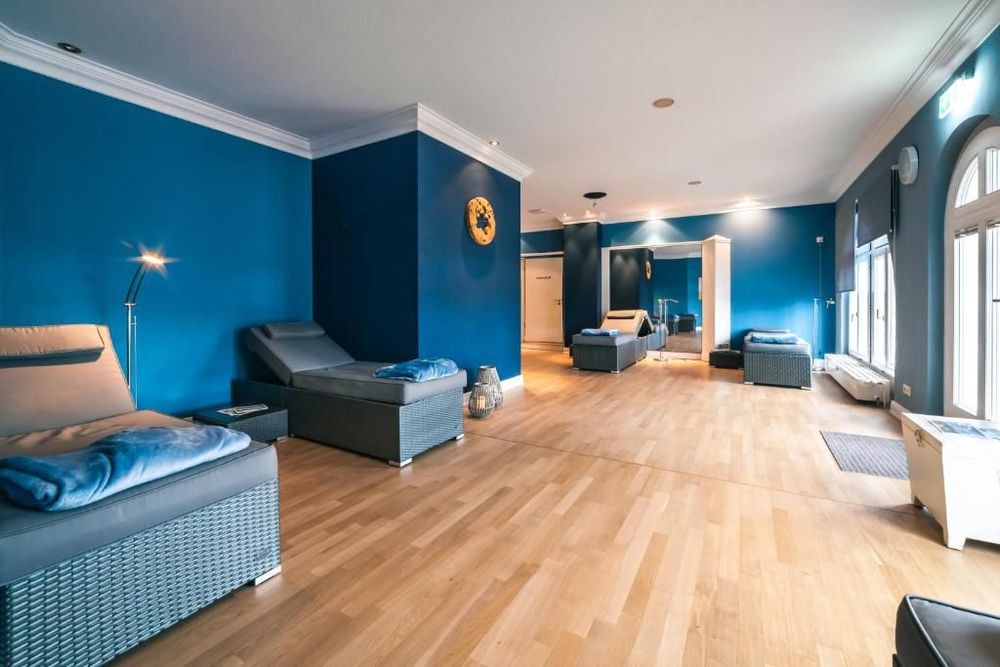 Im Bereich Wellness und Fitness erlebst du Thalasso mit echtem Nordseebezug. Meerwasserbäder, Algen und Meerschlick spielen eine tragende Rolle. Das Haus gewinnt sein Meerwasser über einen eigenen Brunnen und nutzt es für Bäder und Anwendungen. Als besondere Behandlung bietet sich ein Rasul an. Du verteilst mineralische Pflegeschlämme auf der Haut und entspannst im Kräuterdampf. Ebenso stimmig sind Themenrituale von Thalgo wie Mer des Indes oder Iles Pacifique, die Peeling, Bad und Massage zu einem runden Ablauf verbinden. Für Bewegung steht dir ein Fitnessraum auf zwei Ebenen zur Verfügung. Die Peloton Bikes bringen dir Live Kurse direkt ins Hotel. Im Pool finden Aqua Fitness Einheiten statt und in der Saunalandschaft erlebst du Aufgüsse mit ruhigen Rückzugsbereichen, anschließend wartet im modernen Ruheraum ein Smoothie. Wer tiefer einsteigen möchte, bucht eine Original Thalasso Woche mit morgendlicher Sportgymnastik, Aquafitness und Walken am Meer als Gruppenaktivitäten.